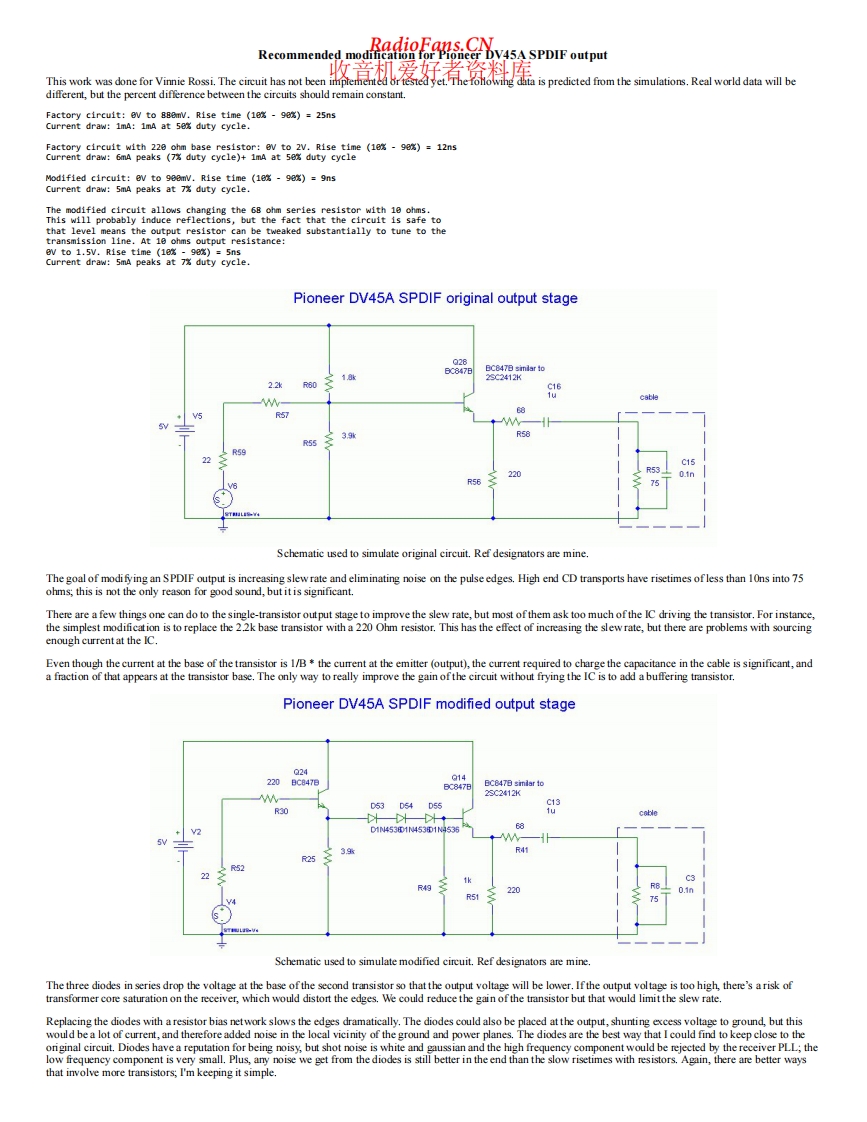Pioneer Elite DV45A SPDIF output Modigfication 电路图