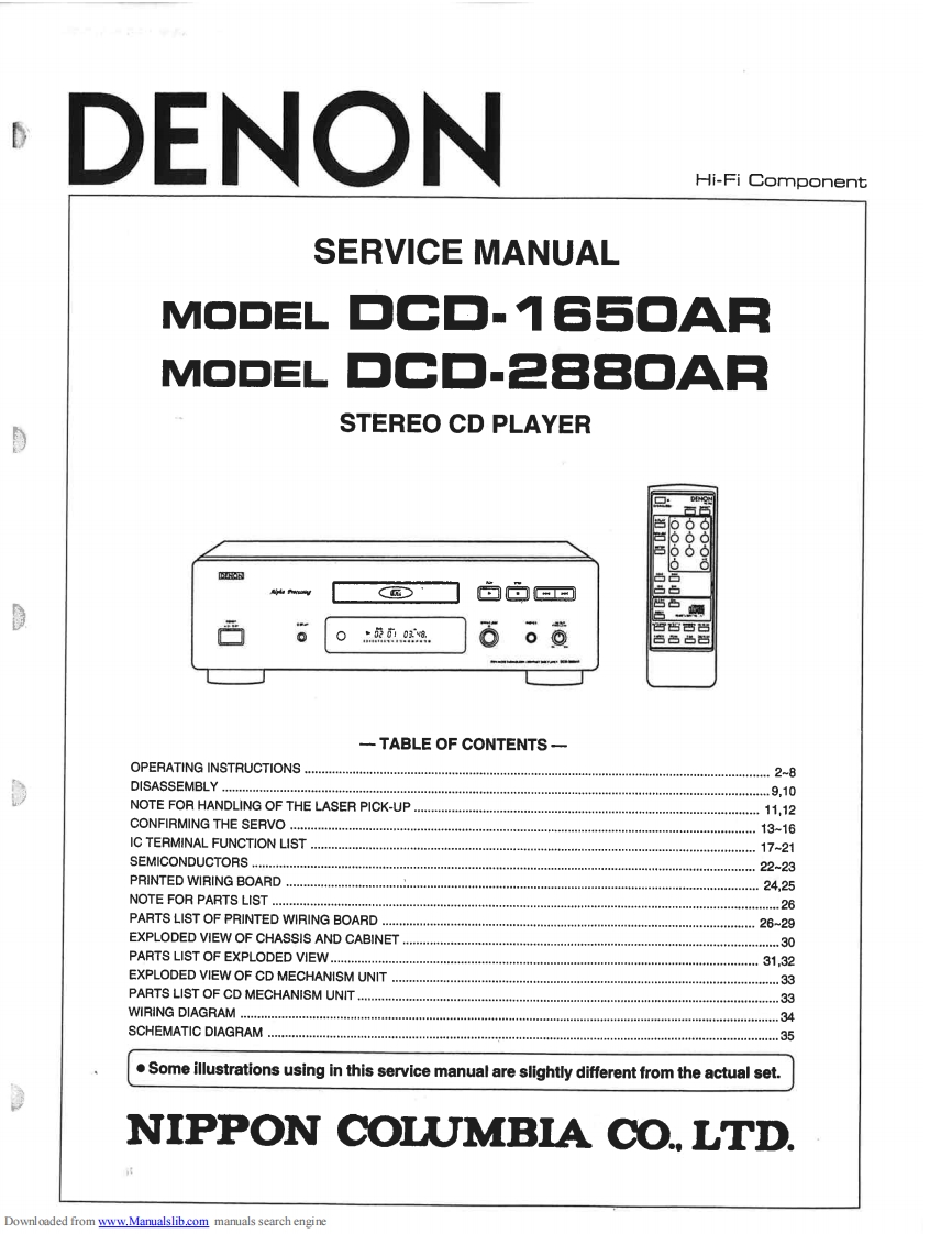首页CD/VCD/DVD/LD激光唱机Denon Denon,DCD-1650AR,2880AR_service