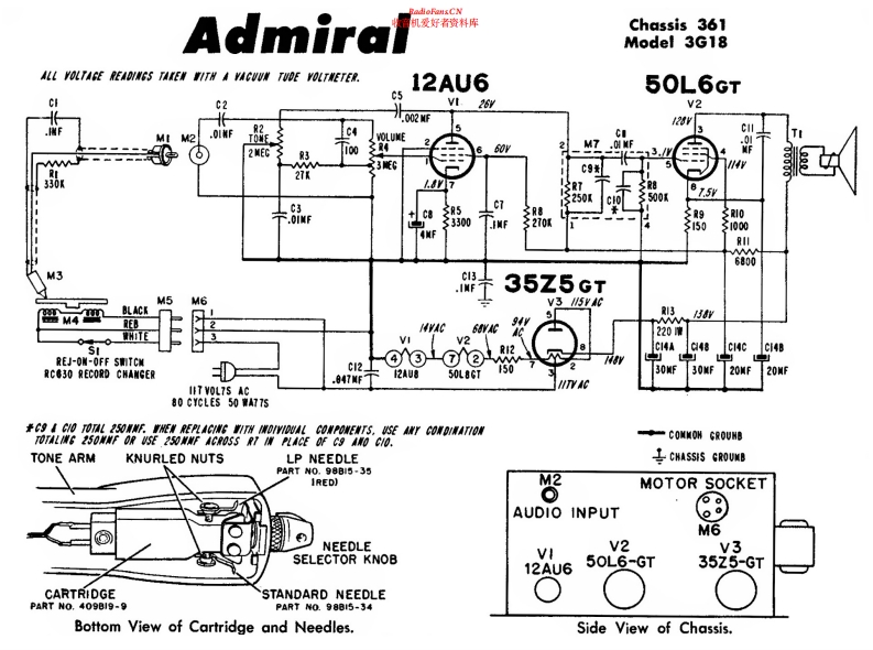 ADMIRAL - 3G18 - Mono Phonograph - Schematic Diagram 电路图 维修手册