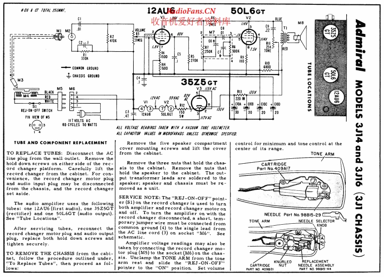 ADMIRAL - 3J14 - Mono Phonograph - Schematic Diagram 电路图 维修手册