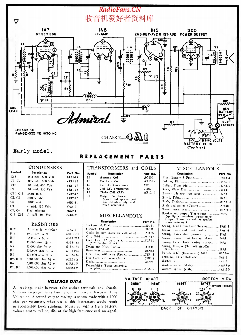 ADMIRAL - 4A1 - AM Portable Radio - Schematic Diagram and Adjustment 电路图 维修手册