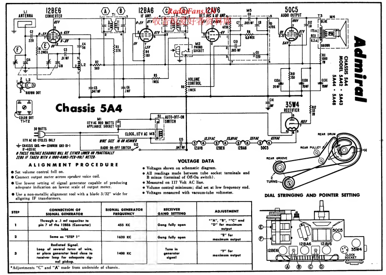 ADMIRAL - 5A42 - AM Radio - Schematic Diagram and Adjustment 电路图 维修手册