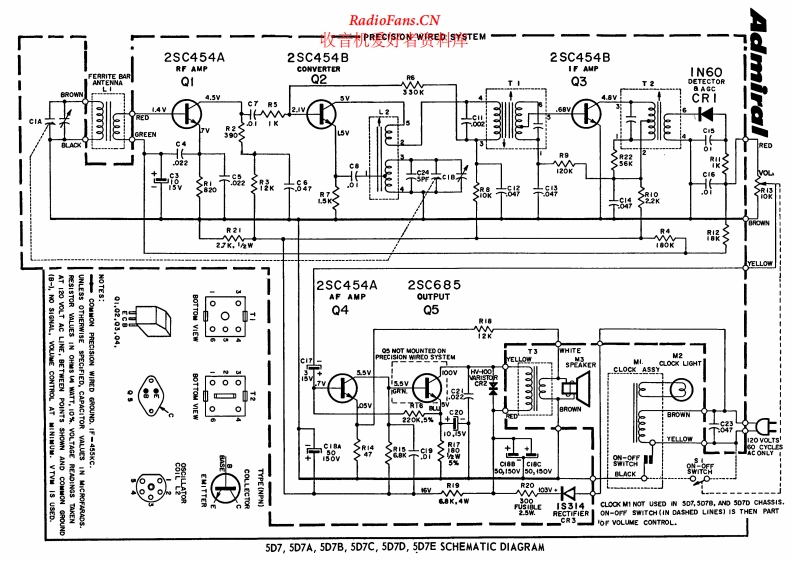 ADMIRAL - 5D7A - AM Radio - Schematic Diagram 电路图 维修手册