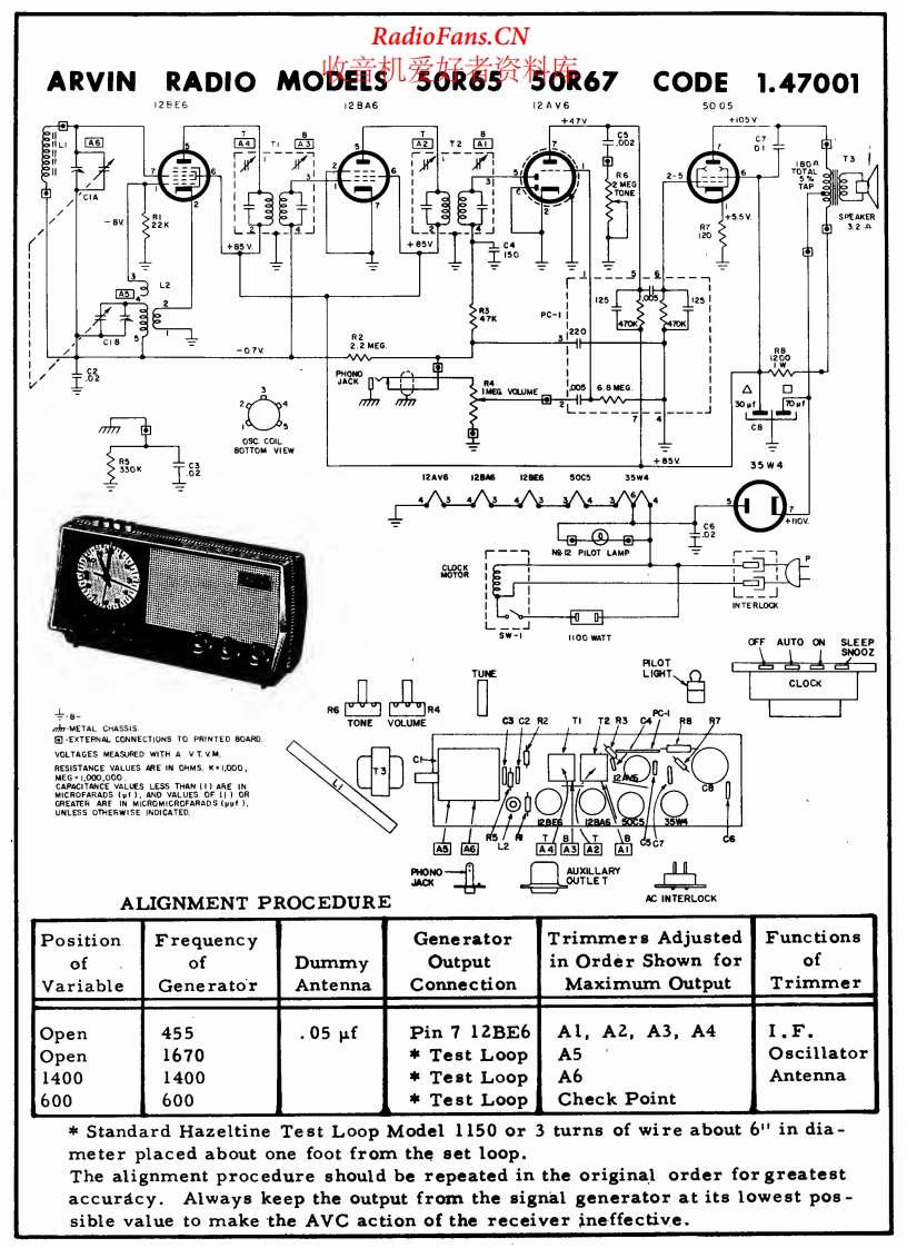 ARVIN - 50R67 - AM Radio - Schematic Diagram and Adjustment 电路 维修手册