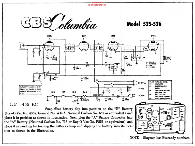CBS-COLUMBIA - 525 - AM Portable Radio - Schematic Diagram 电路 维修手册