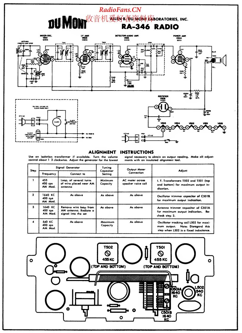 DUMONT - RA-346 - AM Radio - Schematic Diagram and Adjustment 电路图 维修手册