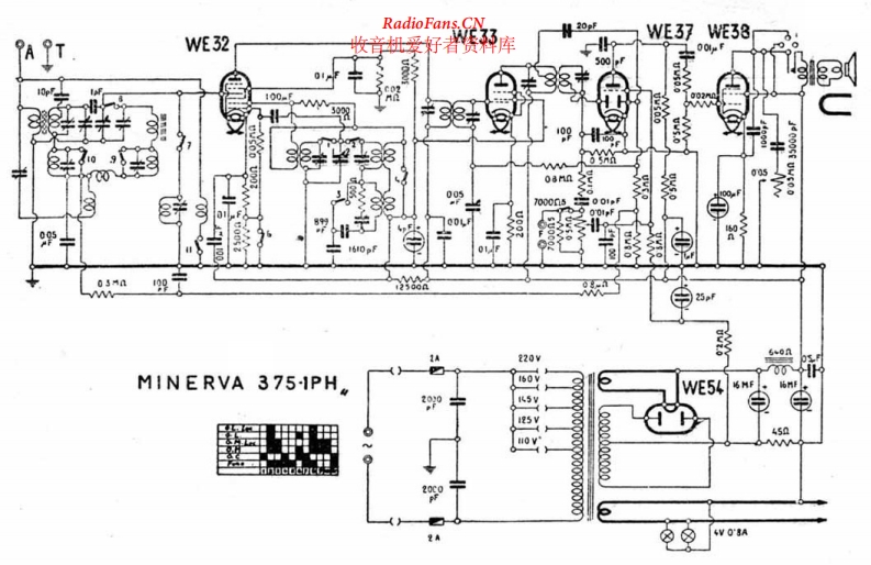 MINERVA - 375-1PH - AM-LW-SW Radio - Schematic Diagram 电路图 维修手册