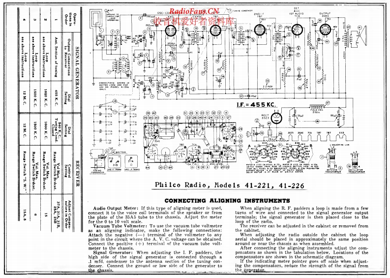 首页欧美收音机Philco PHILCO - 41-226 - AM-SW Radio - Schematic Diagram and Adjustment 电路图 维修手册