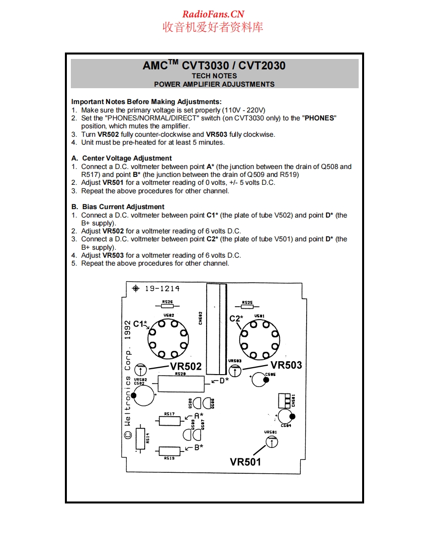 首页功放/音响/收扩机Amc Amc-CVT2030-pwr-adj 电路图 维修手册