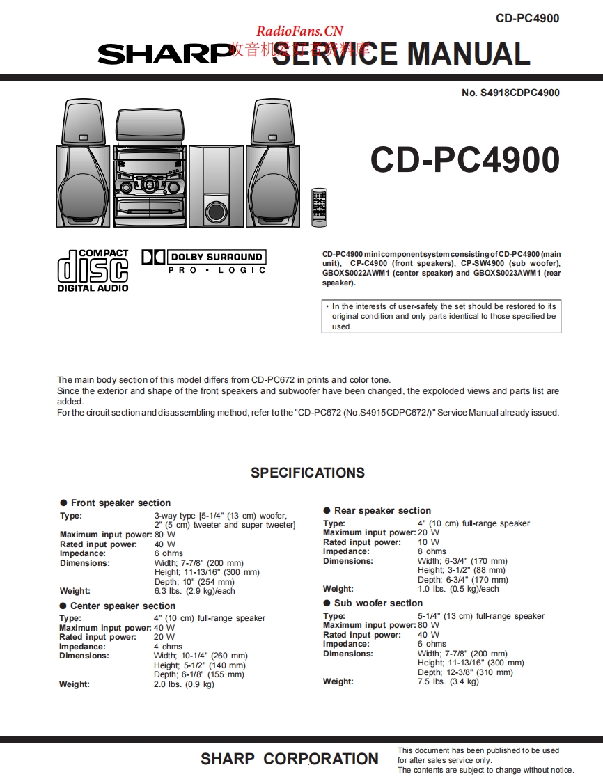 首页卡座/开盘/收录机Sharp Sharp - Cdpc4900 电路图