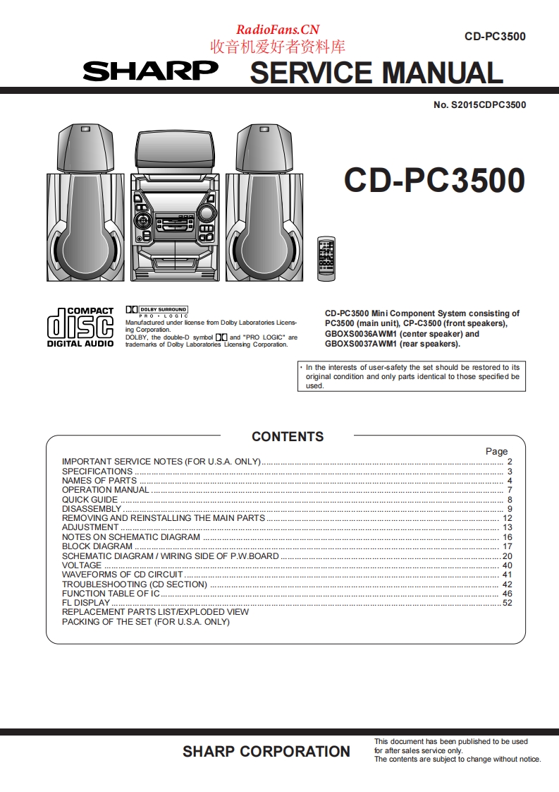 首页卡座/开盘/收录机Sharp Sharp - Cdpc3500 电路图
