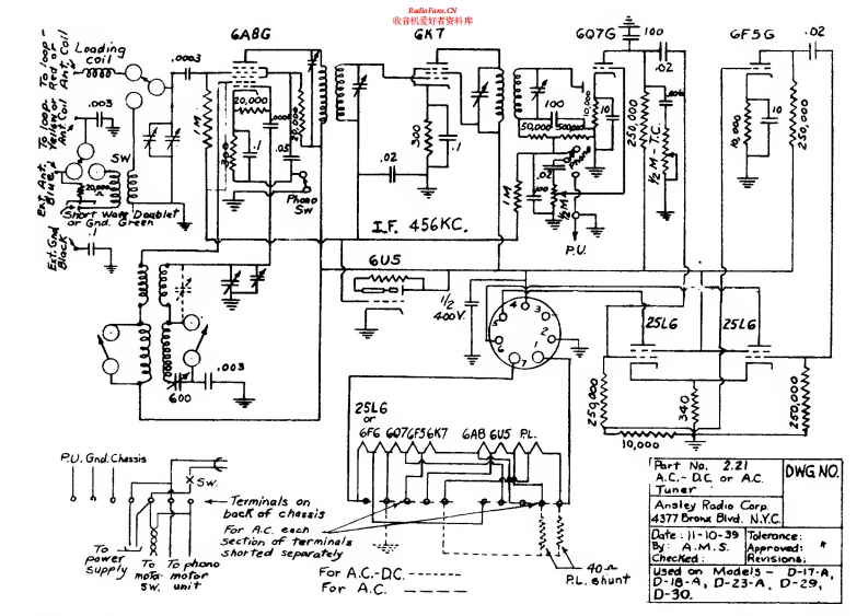 首页欧美收音机ANSLEY RADIOANSLEY RADIO - D18A - AM-SW Radio - Schematic Diagram 电路 维修手册
