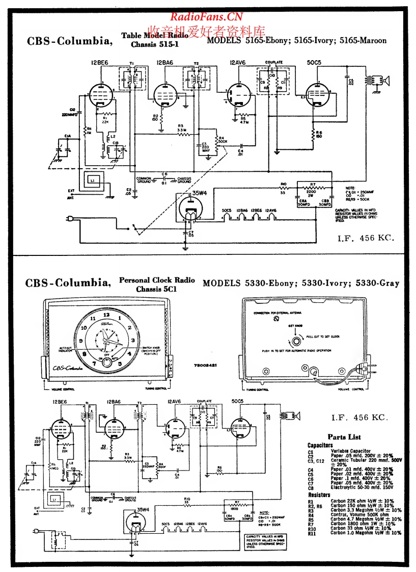 CBS-COLUMBIA - 5165 - AM Radio - Schematic Diagram 电路 维修手册