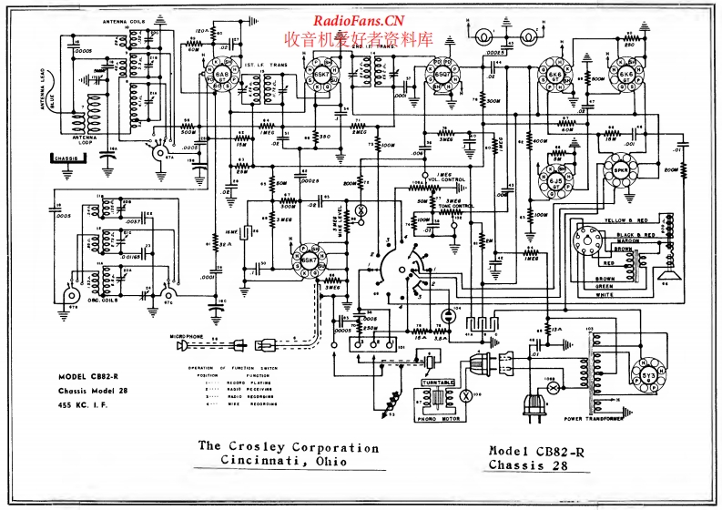 CROSLEY - CB-82R - Mono Phonograph with Disc Writer and AM-FM Mono Radio - Schematic Diagram and Adjustment 电路图 维修手册