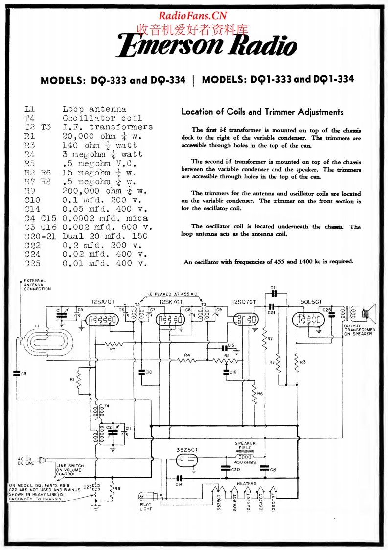 EMERSON - DQ1-334 - AM Radio - Schematic Diagram 电路图 维修手册