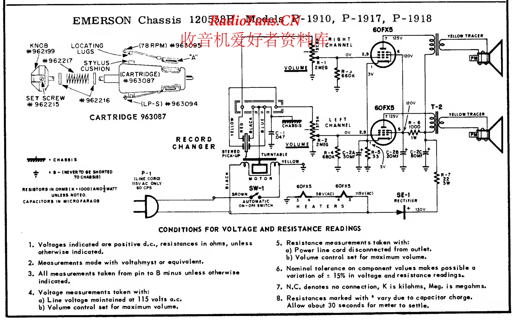 EMERSON - P-1918 - Stereo Phonograph - Schematic Diagram 电路图 维修手册