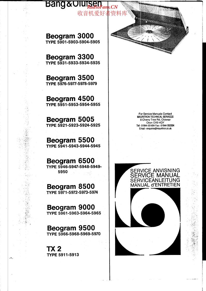 首页功放/音响/收扩机Bang & OlufsenBO-Beogram5005_type5921_to_5925-tt-sm1 电路图 维修手册