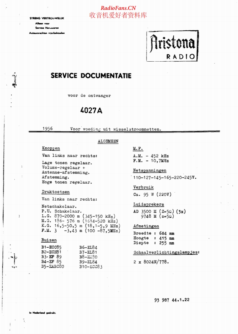 首页功放/音响/收扩机Aristona Aristona-4027A-rec-sm 电路图 维修手册