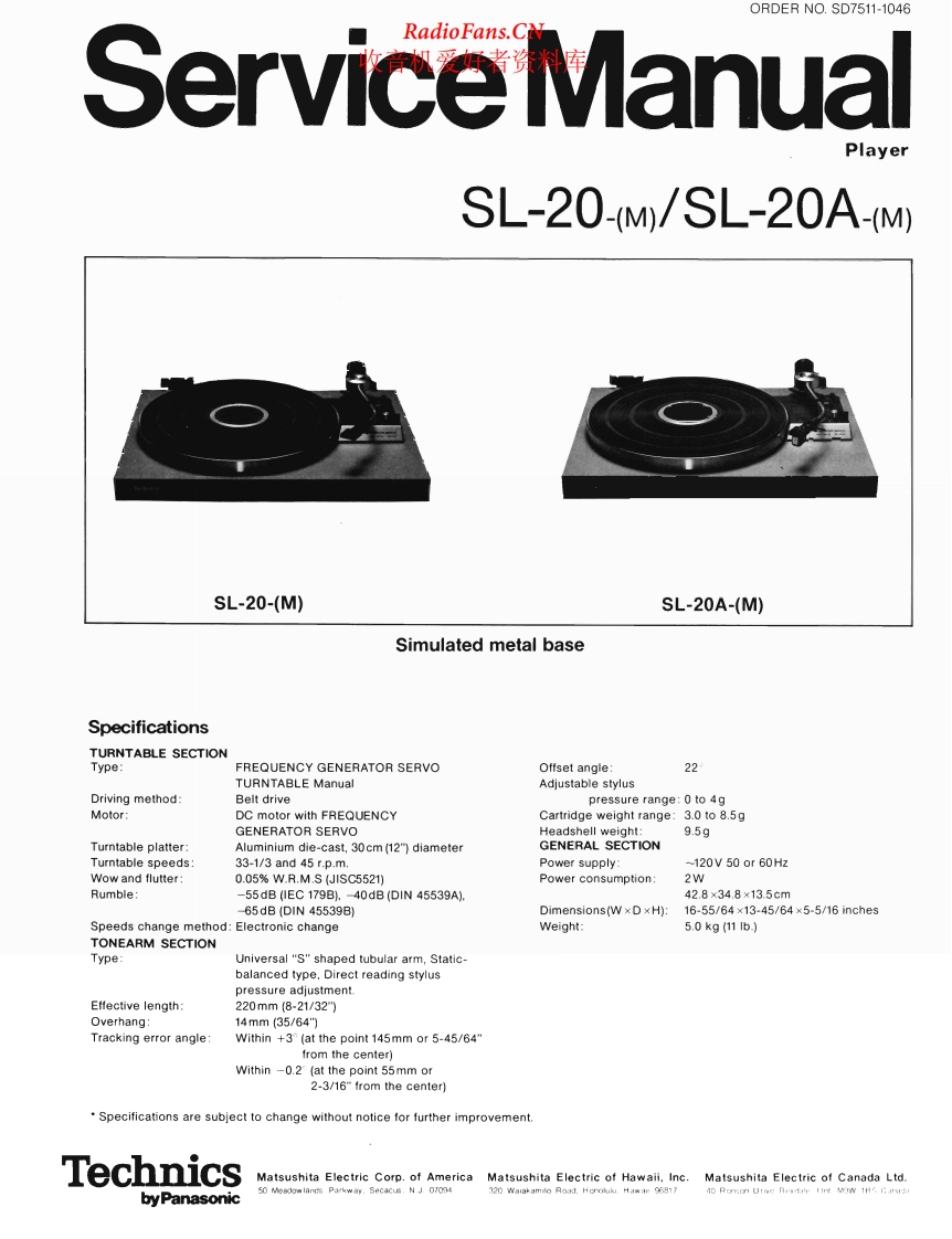 Technics-SL-20-Service-Manual(1) 电路图 维修手册