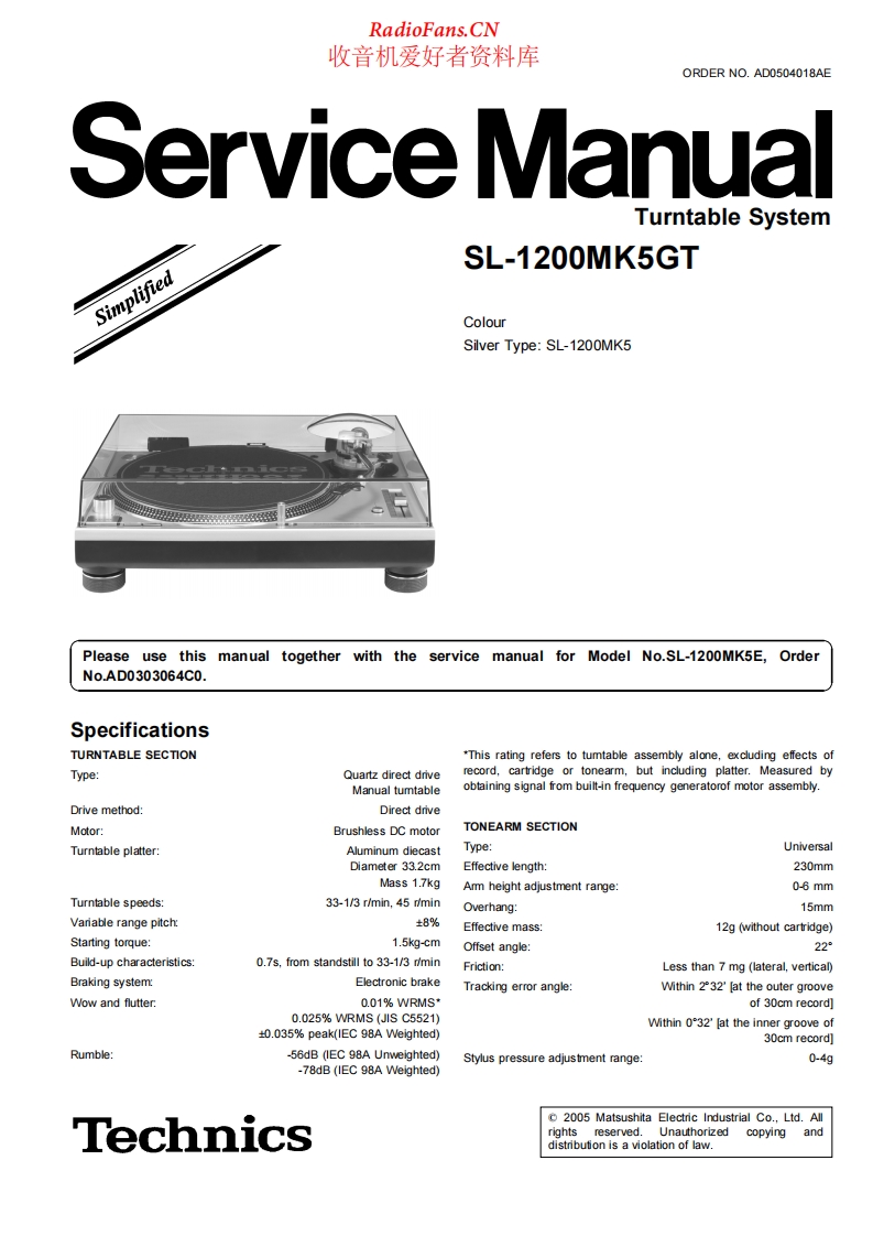 Technics-SL-1200-MK-5-GT-Service-Manual 电路图 维修手册