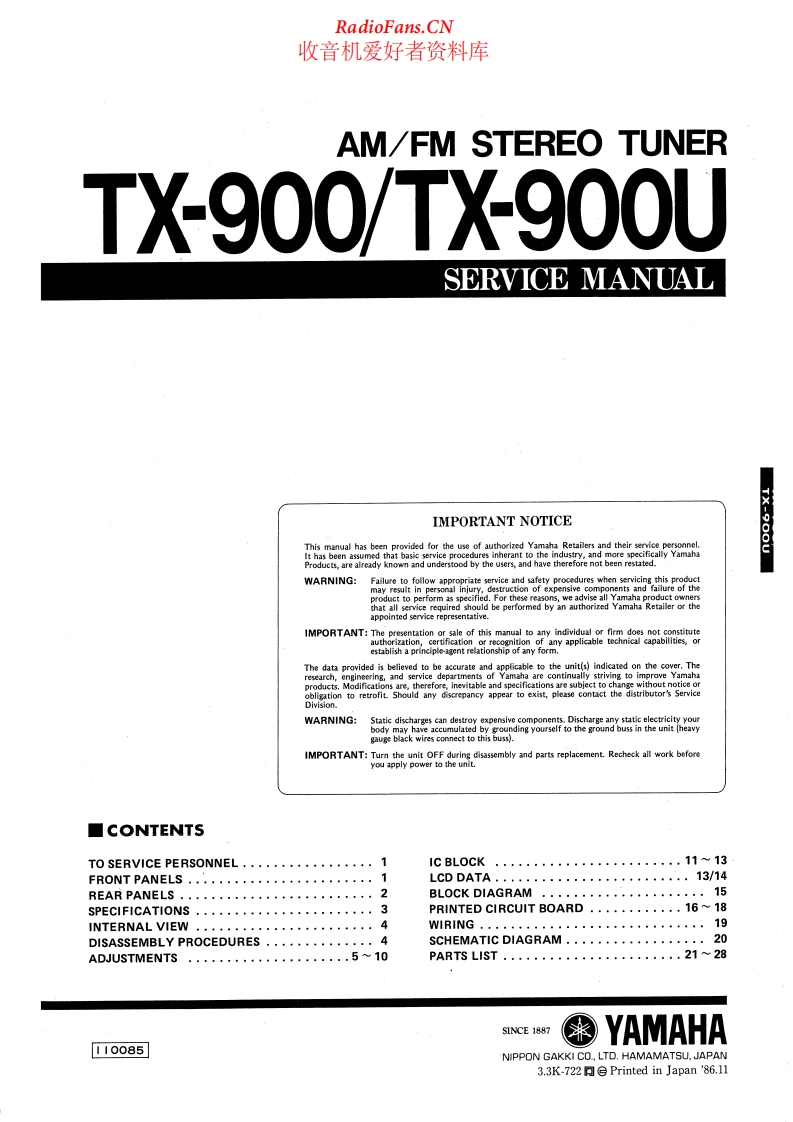 首页日本收音机YamahaYamaha-TX-900-U-Service-Manual 电路图 维修手册